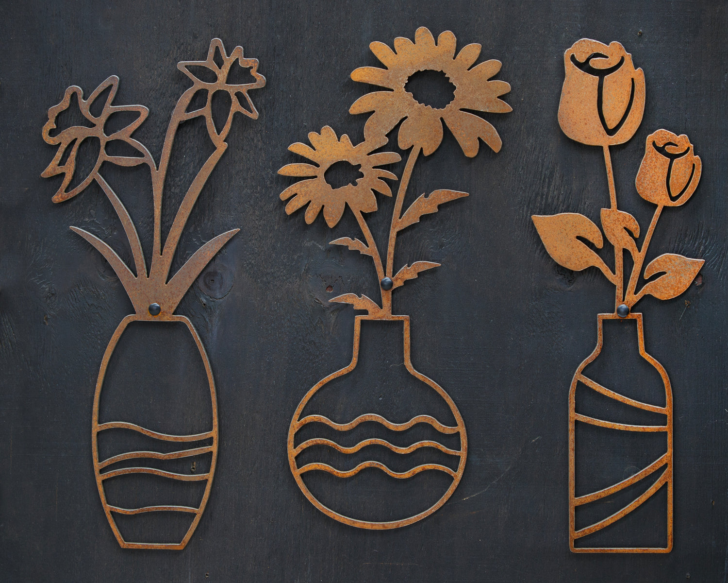 Cut from 1.6mm corten weathering steel. Rough edges from cutting are chipped away before being processed in a deburring machine giving the product its nice even finish ready for weathering