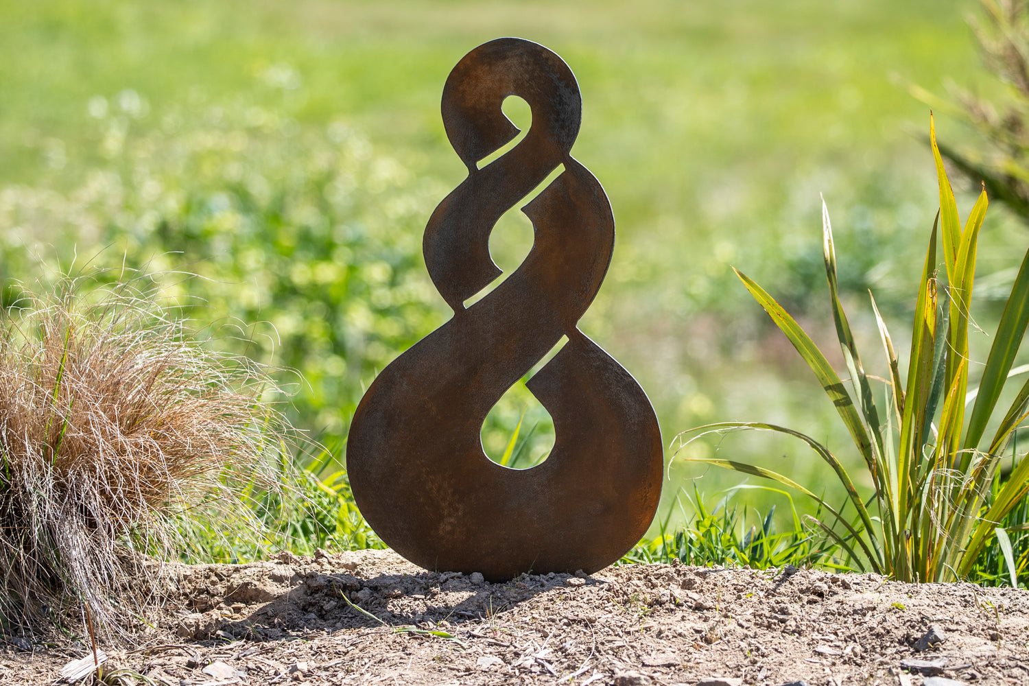 Cut from 2.5mm corten weathering steel. Rough edges from cutting are chipped away before being processed in a deburring machine giving the product its nice even finish ready for weathering. For best results lie flat, wash well with soapy water and rinse off well before hanging.