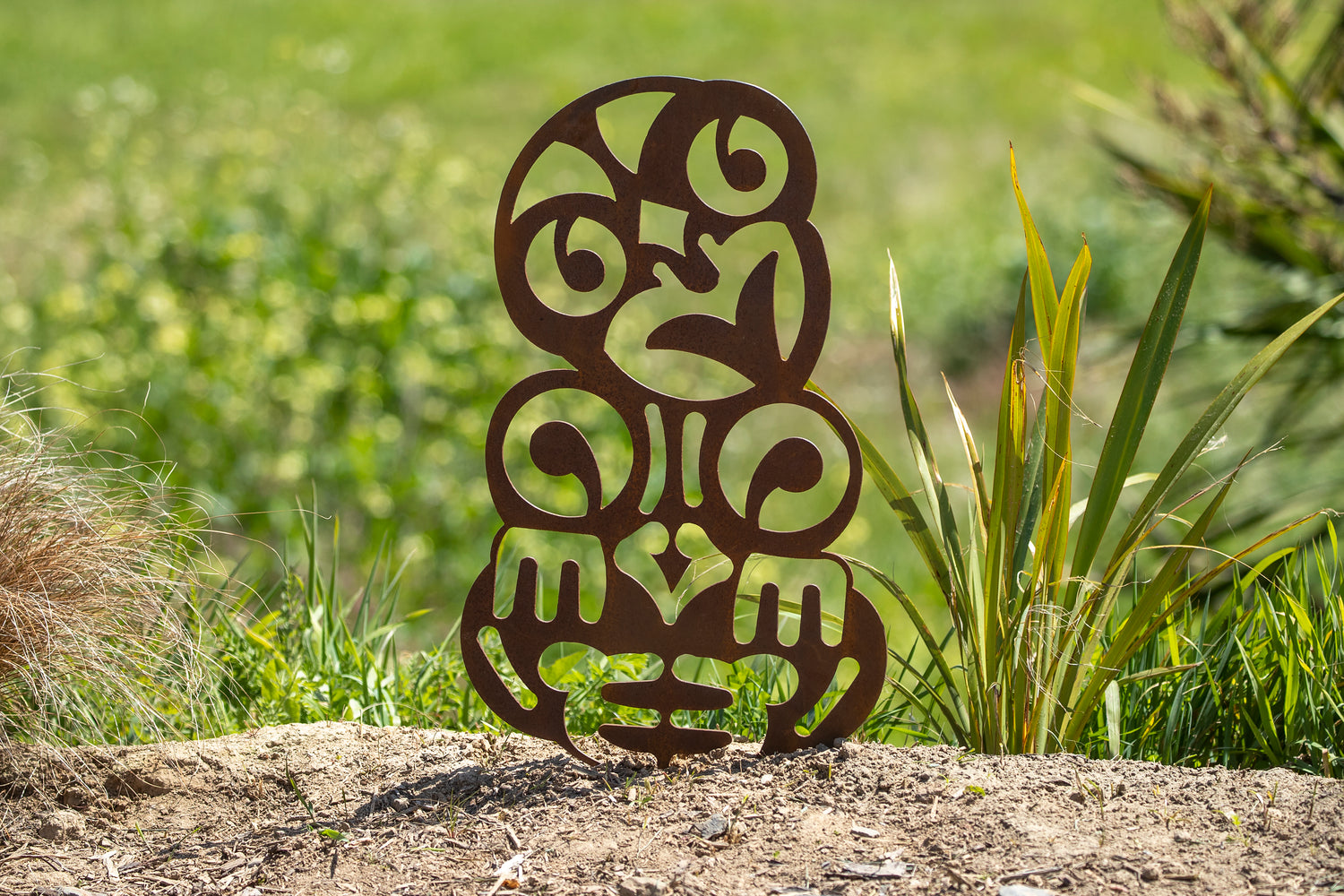 Cut from 2.5mm corten weathering steel. Rough edges from cutting are chipped away before being processed in a deburring machine giving the product its nice even finish ready for weathering. For best results lie flat, wash well with soapy water and rinse off well before hanging.