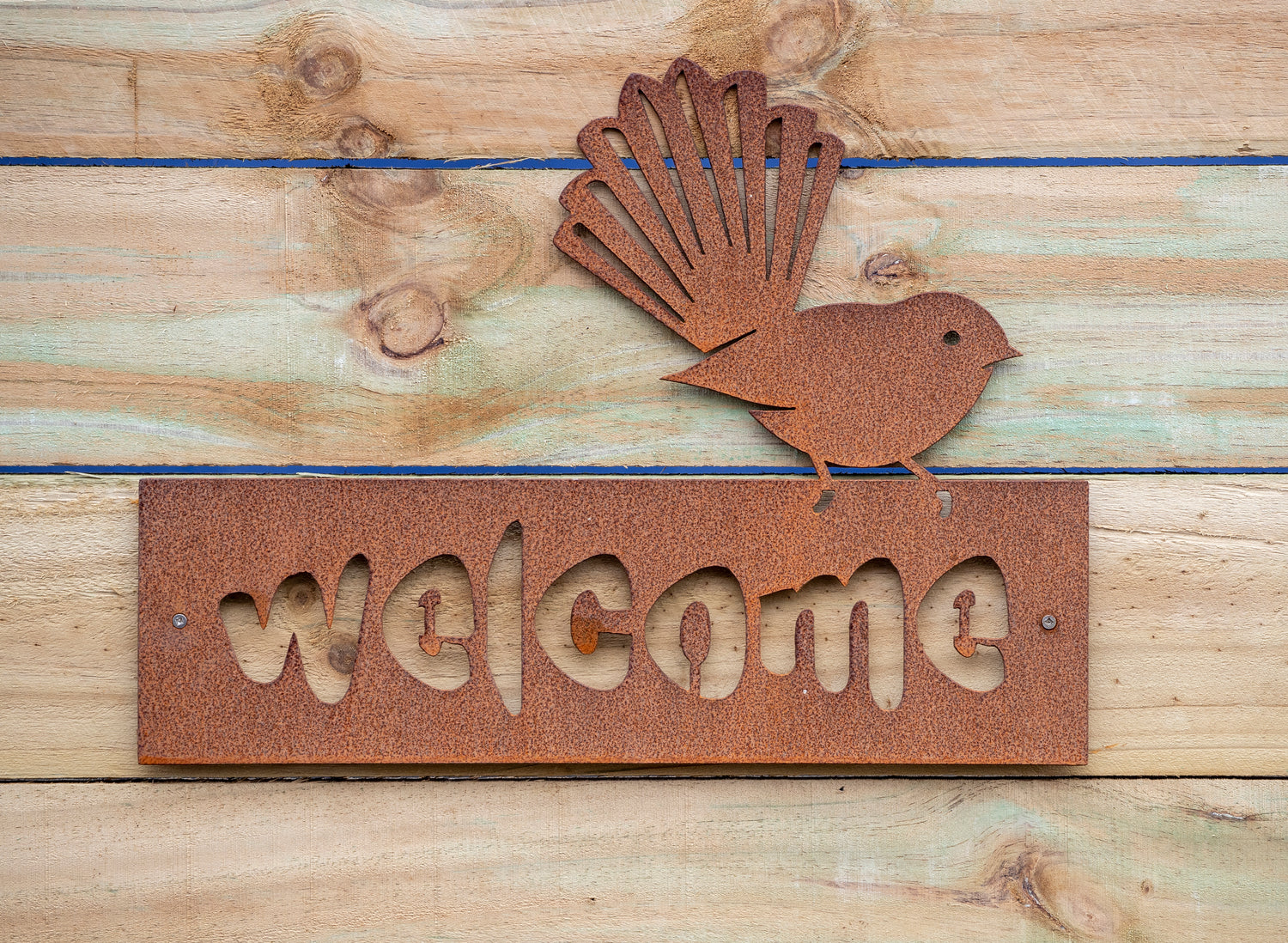Cut from 2.5mm corten weathering steel. Rough edges from cutting are chipped away before being processed in a deburring machine giving the product its nice even finish ready for weathering. For best results lie flat, wash well with soapy water and rinse off well before hanging.